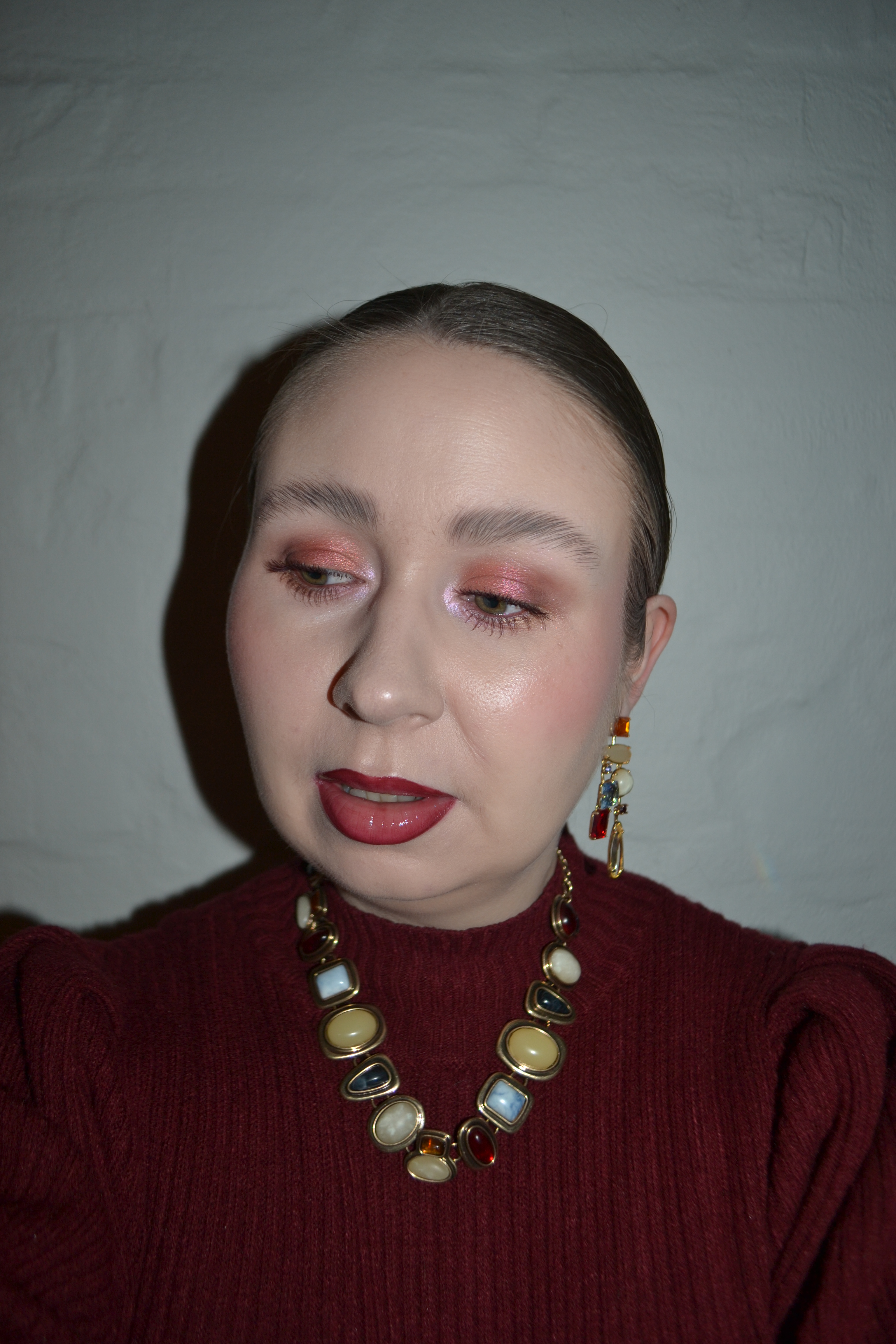 Here’s the make-up I wore with this outfit. Obviously, I had to continue with the monochromatic bordeaux/burgundy theme when it came to my make-up, and I think the look turned out very pretty.