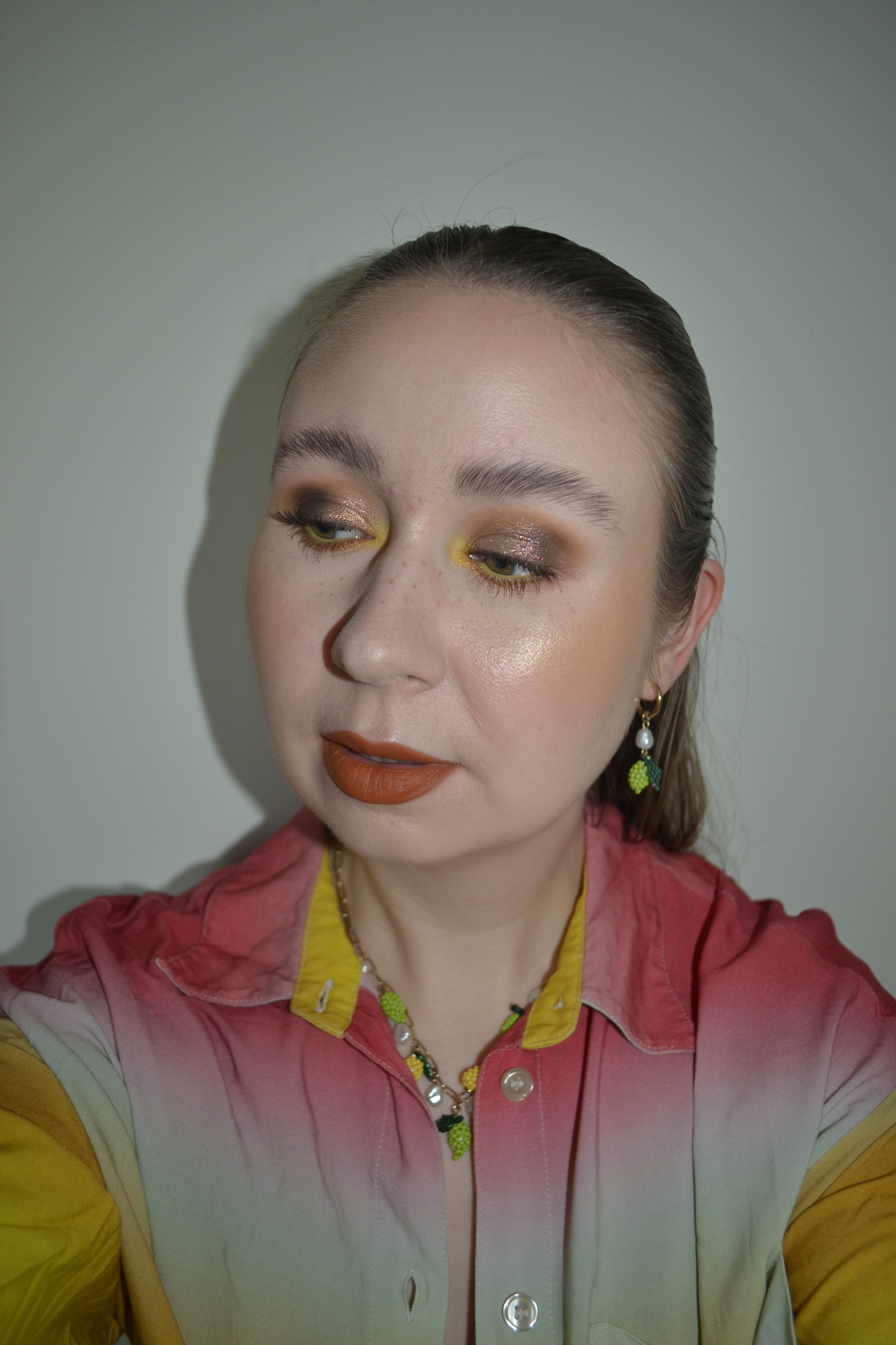 (Base: primer – Colourpop Pretty Fresh Set It Up primer, foundation – Missha M Perfect Cover B.B Cream Spf 42 (shade: 21 Light Beige), concealers – Rare Beauty Positive Light under eye brightener (shade: Light) + NYX Bare With Me concealer serum (shade: 02 Light), powder – Anastasia Beverly Hills loose setting powder in Translucent. Face make-up: bronzer – Catrice Melted Sun liquid bronzer in 005 Tan Lines, blush – Lethal Cosmetics x Adventure Time Marceline blush, highlighter – Colourpop Twilight Super Shock highlighter in Vampire Skin. Eye make-up: base – MAC Pro Longwear Paint Pot in Painterly, eyeshadows – Essence eyeshadow in 20 Cream + Nomad Cosmetics Berlin Untergrund intense color palette (shades: NDW + Klubnacht + Tekkno + East Side Gallery + Kreuzberg), mascara – Kiko Milano Smart Colour mascara in 07 Navy Blue, eyeliner – Marc Jacobs Fineliner Ultra-Skinny Gel Eye Crayon (shade: Steel(etto)). Eyebrows: MAC Shape + Shade brow tint in Taupe + Anastasia Beverly Hills Brow Freeze. Lips: KVD Beauty Everlasting lip liner in Skully + Unearthly Cosmetics Menacing Metals lipstick in Void)