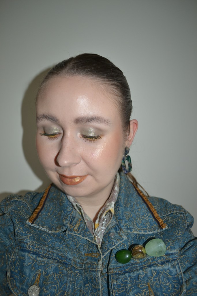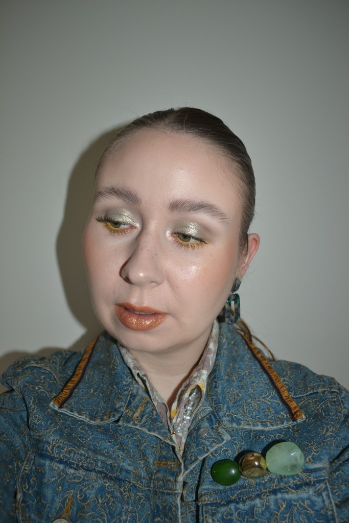 Here’s the make-up I wore with this outfit. I don’t remember the last time I wore a gold lip, but it’s kind of fun, isn’t it?