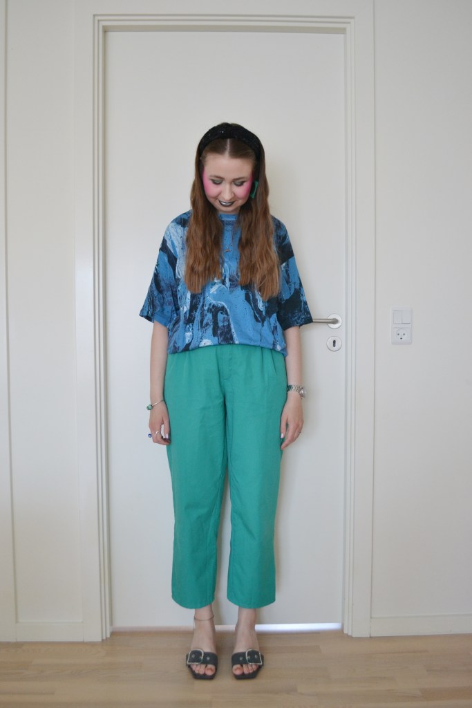 (Shirt – second hand, belt + trousers – H&M, shoes – Crocs)